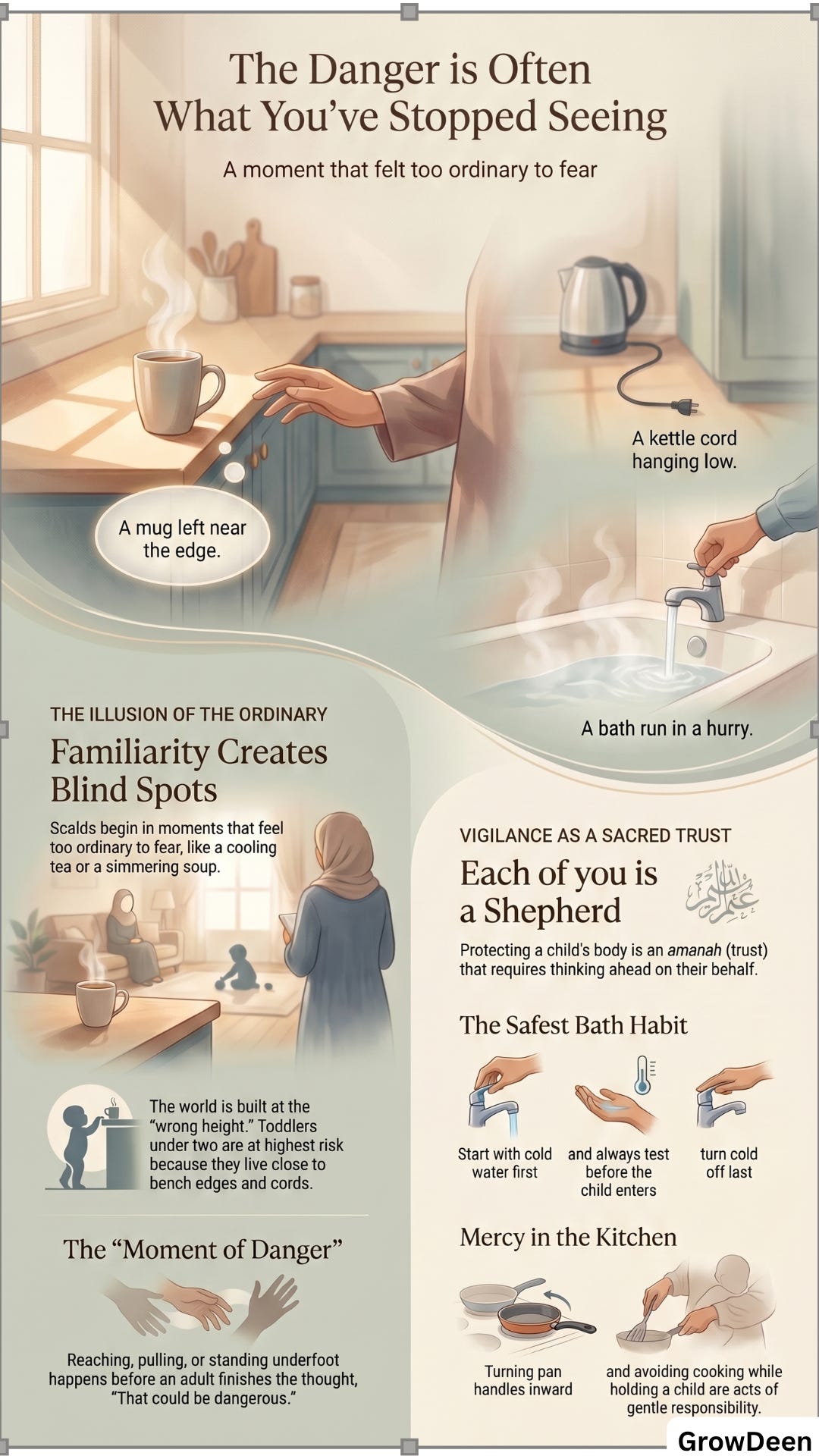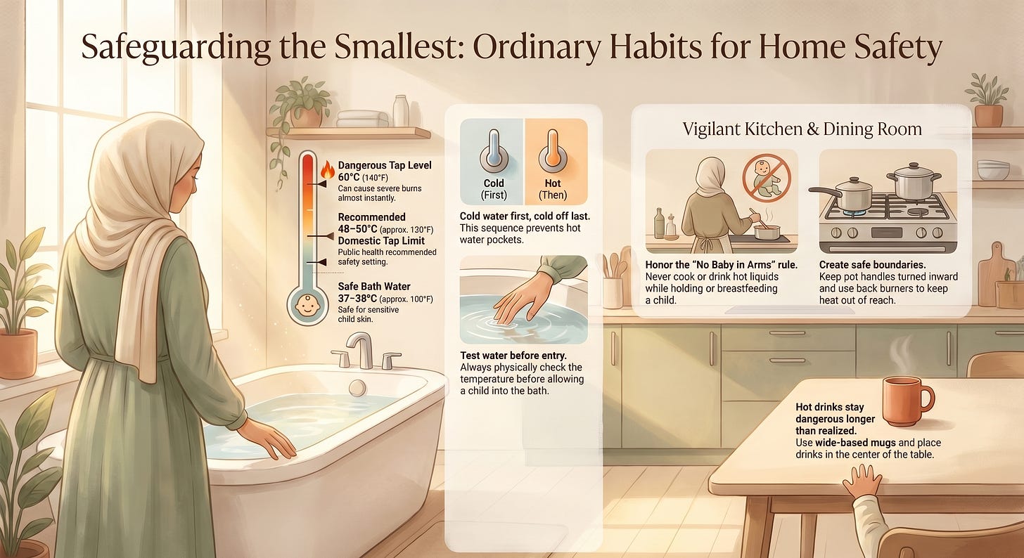 A parent who arranges the home more safely, learns first aid, and changes routines around hot liquids out of sincere care for the child is not just being practical. They are honoring a trust for Allah’s sake.