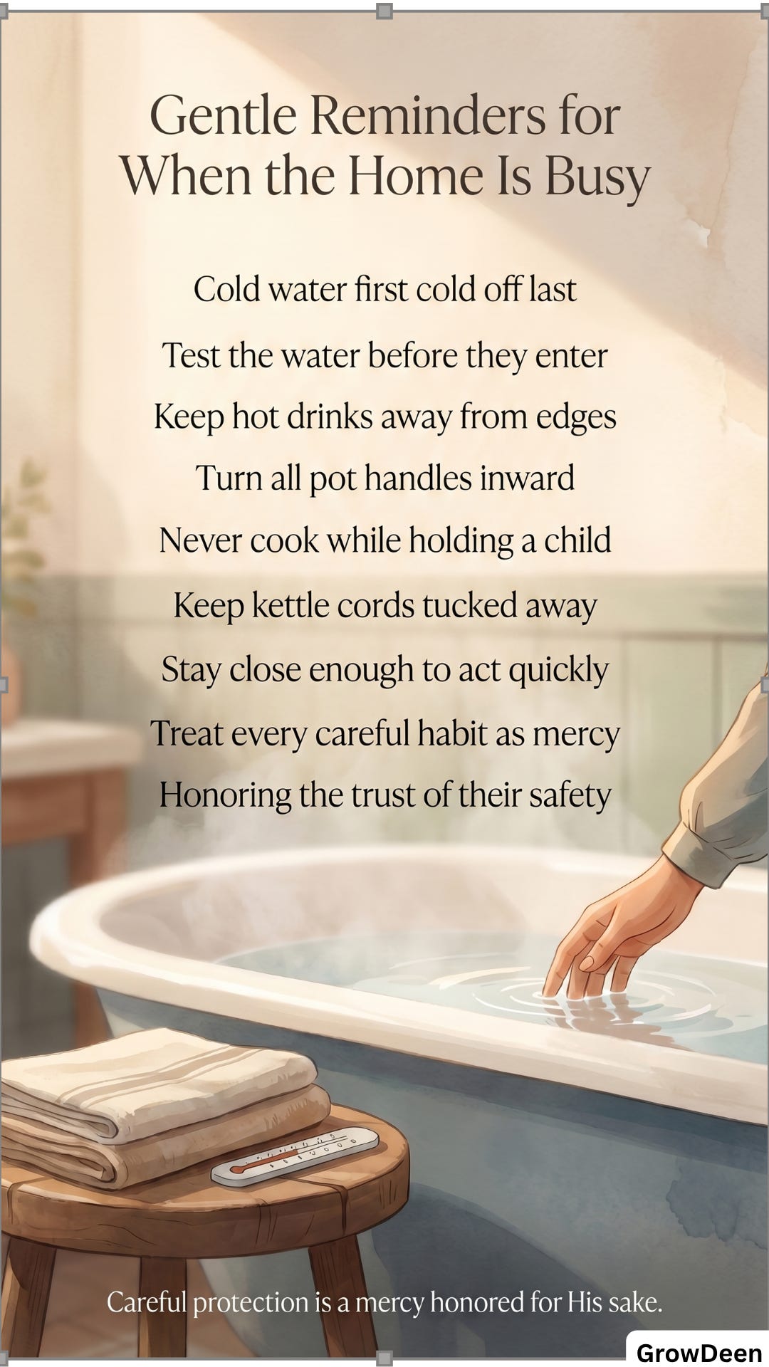 And if someone comes to mind while you are reading, a parent, grandparent, teacher, caregiver, or anyone responsible for children around kitchens, bathrooms, hot drinks, and cooking areas, share it with them too.