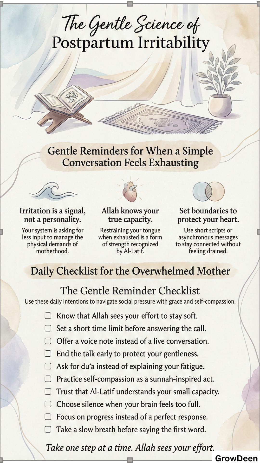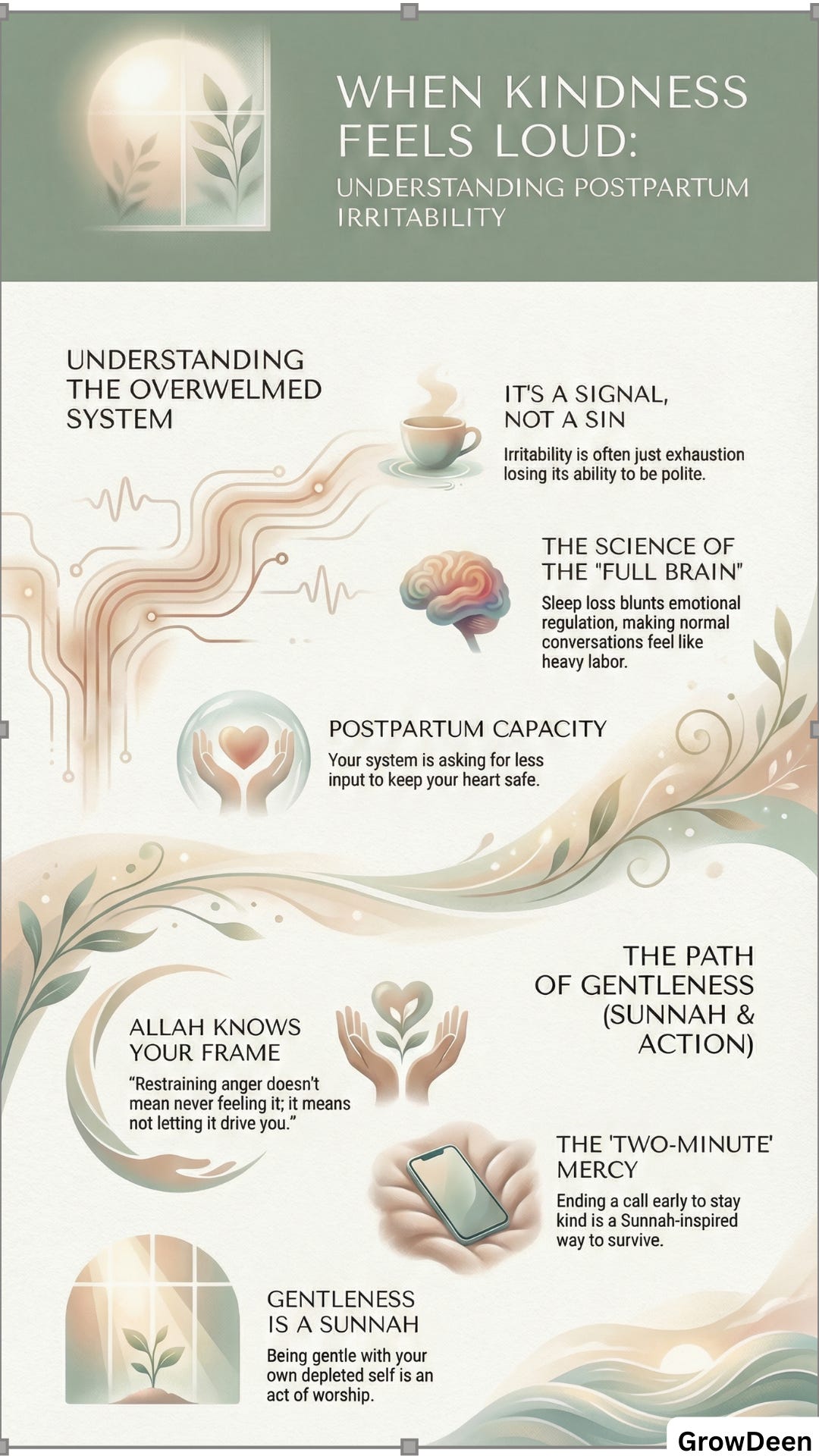 Postpartum irritation during normal conversations is often not a broken character, it is an overworked nervous system, and you can protect your gentleness with small boundaries that still keep love intact.