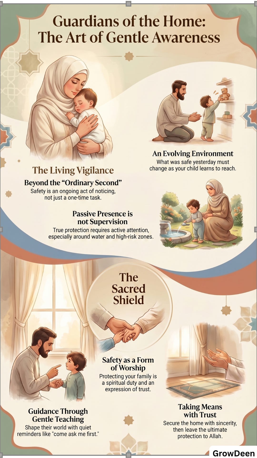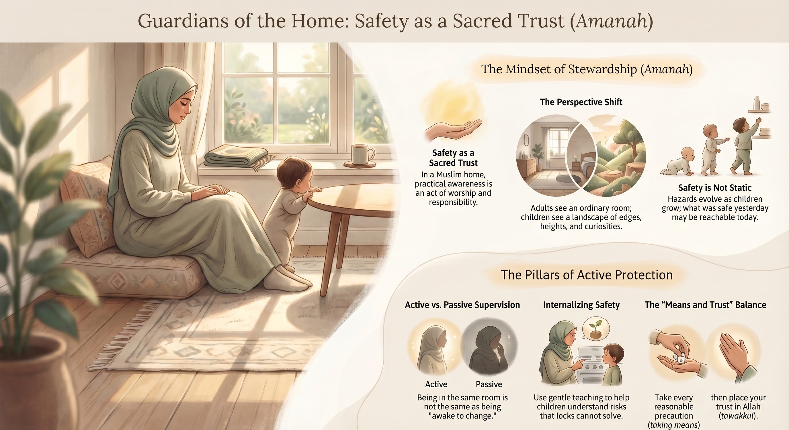 That protection includes spiritual care, of course. But it also includes physical care. It includes paying attention to the home, to routines, to risks, to things that can injure or harm. In a Muslim home, this practical awareness is not a worldly distraction from deen. It is part of amanah. Part of responsibility. Part of what it means to care for those entrusted to you.