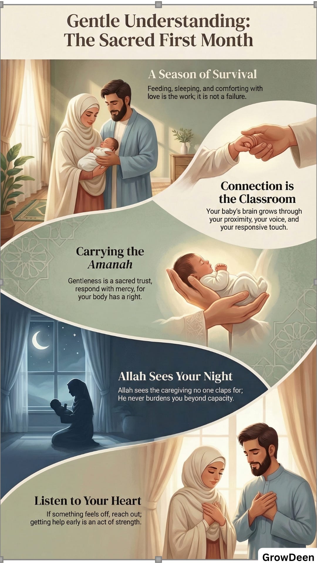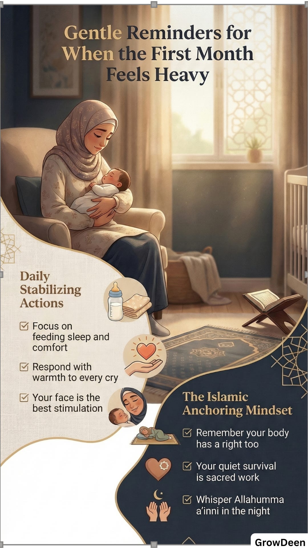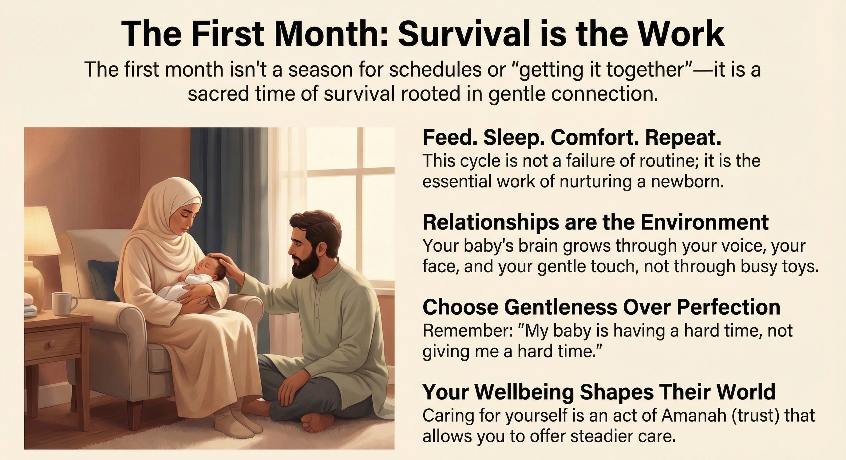 If you want gentle, medically grounded, Islamically rooted reminders for the newborn weeks, subscribe for free so you receive the next article and the next set of Gifts without having to search for them on a tired day.