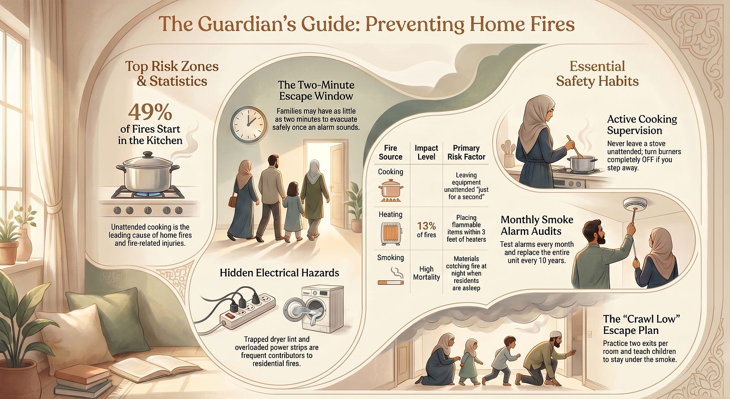 Home fire safety fits this hadith almost exactly. It’s about guardianship. It’s about not assuming that the home is automatically safe just because it’s familiar.