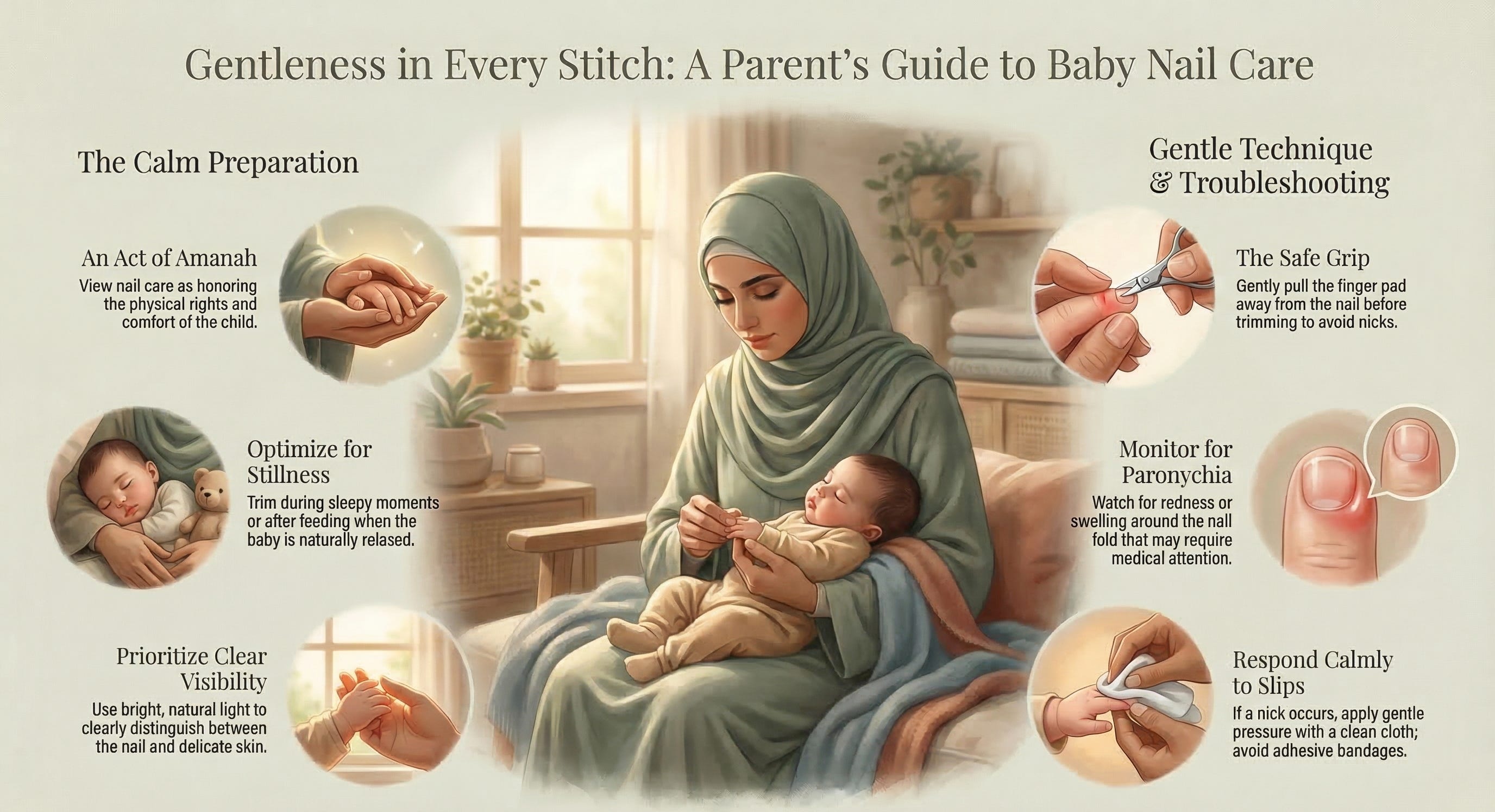 Baby nails can look tiny and harmless, yet they can scratch delicate skin very quickly, so calm trimming, gentle handling, and noticing early signs of infection help protect your baby in simple but meaningful ways.