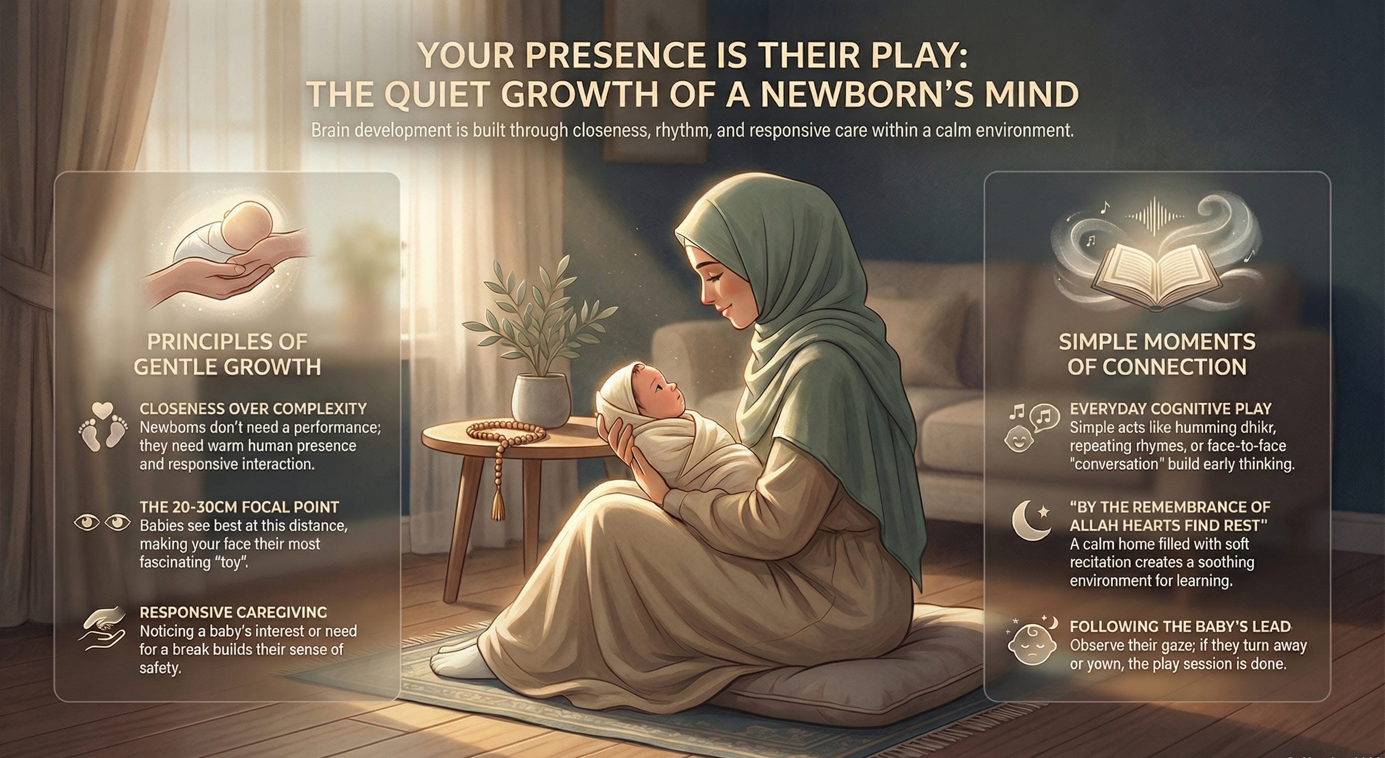 A newborn’s mind opens best in calm, patient, loving interaction. Not hurry. Not pressure.
