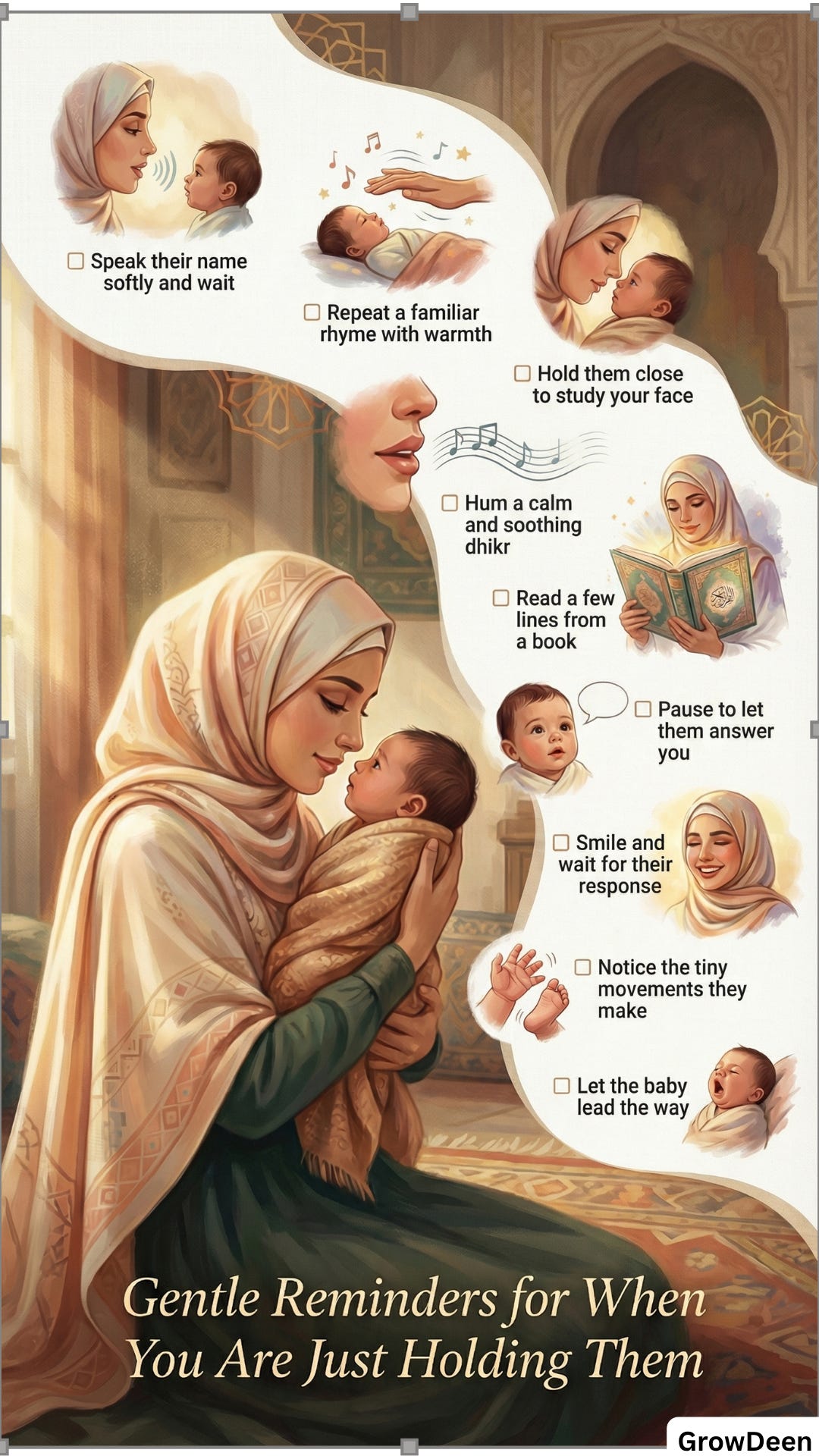 So if your baby needs shorter moments, gentler play, or a quieter pace, that is not a problem to fix. It is part of learning your baby. And if you are tired yourself, that does not mean you are failing. A warm voice still counts when you are tired. A short story still counts. A little window view still counts. A few seconds of eye contact still count.