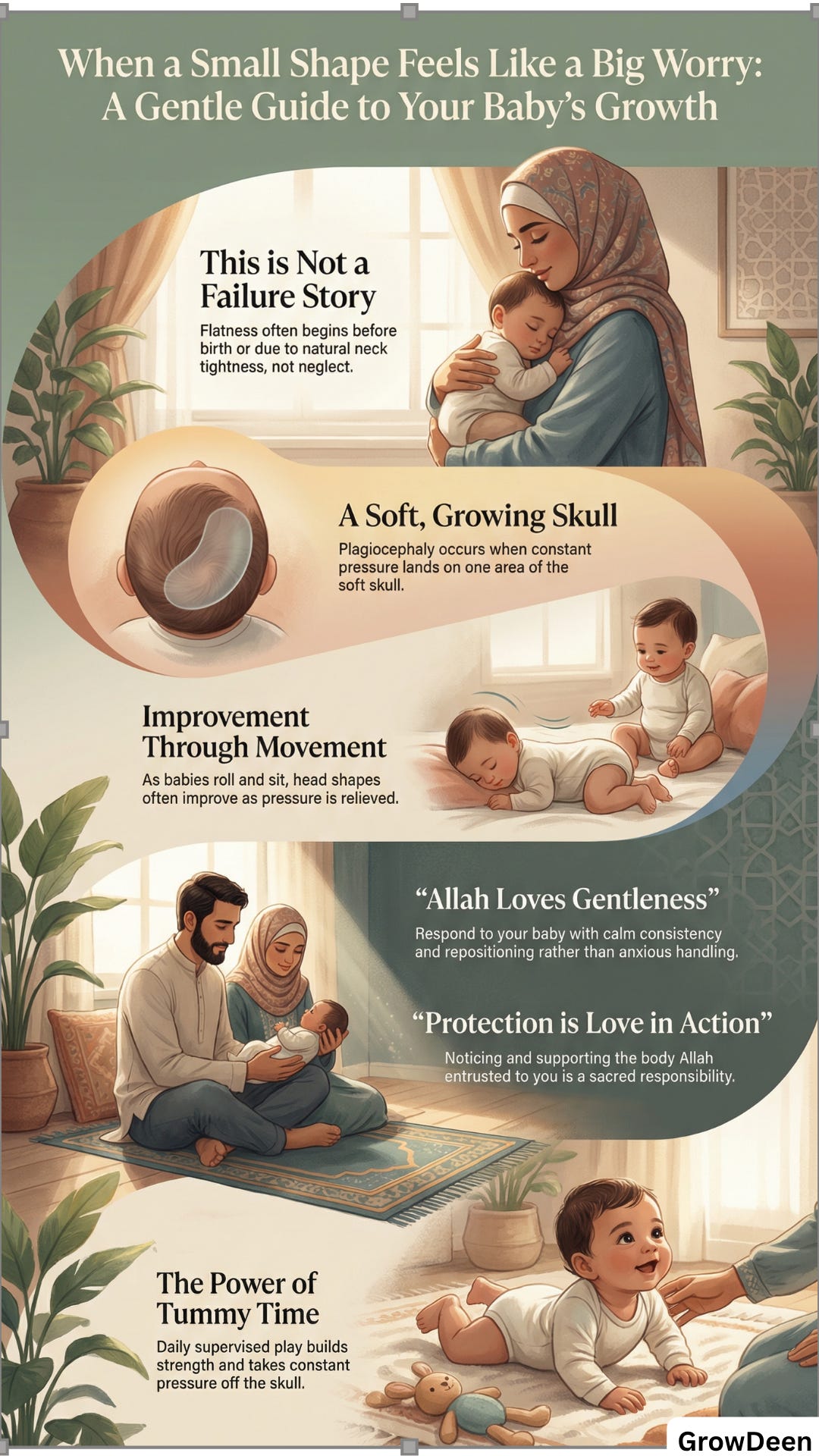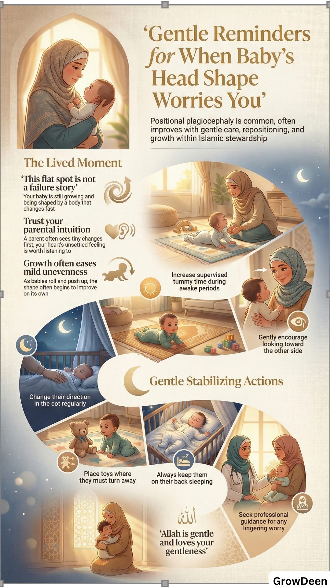 Because a baby with plagiocephaly does not need anxious handling. And a worried parent does not need shame. Gentle repositioning. Gentle consistency. Gentle follow through. Sometimes that is exactly what this season asks of you.